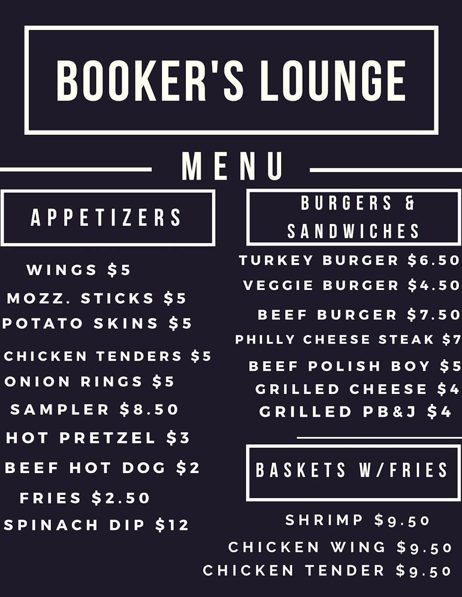 “ I recently dined at Booker's Lounge and I must say, the wings were absolutely phenomenal! The perfect blend of flavors and the crispiness made them stand out. Additionally, the drinks were expertly crafted, enhancing the overall dining experience. Kudos to the bartender for her skillful concoctions. She did an amazing job all night and all around. I'll definitely be back!! In fact: I can’t wait to come back ”